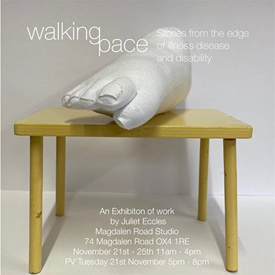 It was a way of engaging conversation in a rare disease who’s first significant sign is ‘Bent Big Toes’. Its rarity allowed Chris’s surgeon to make a mistake and my personal journey and experience pushed me to record and create a piece that might stop one medical person think before acting. It does not offer a cure but engaging an audience does open-up and allow for reflection. I am delighted the pieces I have created are now part of the permanent collection at the Pitt River Museum and are available to be part of the handling collection that offers a narrative of a lived experience of disability.”