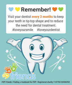 For specialist FOP dental care, contact FOP Friends for the most up to date information.