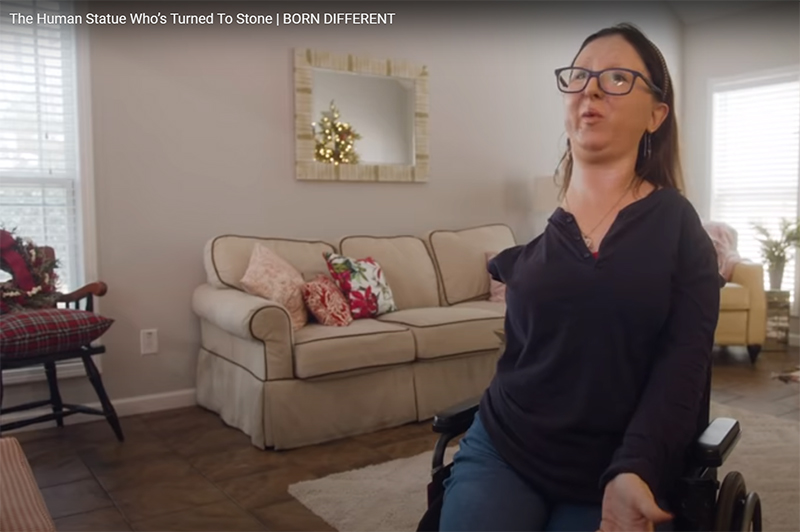 This intimate film shows how Carli battles with intense pain on a daily basis and has already lost significant mobility throughout her body. Despite slowly turning into a human statue, Carli is refusing to let the condition stop her from moving in with her boyfriend and living life to the full whilst she can.